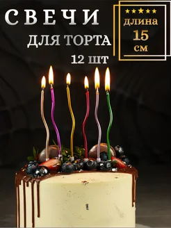 Свечи для торта набор длинные волнистые цветные витые 12 шт