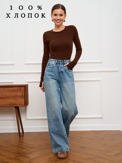 Джинсы широкие прямые трубы с высокой посадкой