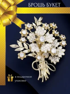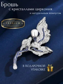 Брошь PREMIUM с натуральным жемчугом и цирконами