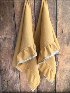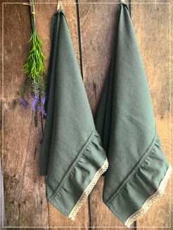 С рюшей кухонные полотенца набор 2 шт. Лён умягчённый