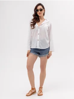 Рубашка женская пляжная с капюшоном накидка на купальник