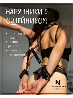 Наручники с ошейником кожаные бдсм для ролевых игр 18+