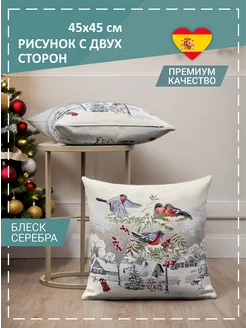 Наволочка гобеленовая Снегири зимой 45х45 см
