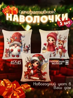 Декоративные наволочки 45х45 Новогодний комплект из 3 шт