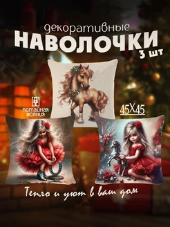 Декоративные наволочки 45х45 из 3 шт 2026 Год Лошади