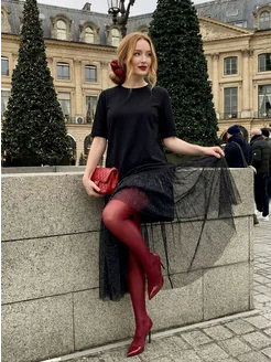 Платье нарядное с прозрачной юбкой сеткой люрексом