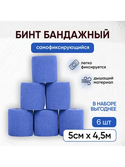 Бинт бандажный самофиксирующийся 5 см х 4,5м, набор 6 шт