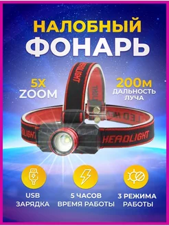 Фонарь налобный аккумуляторный светодиодный на дачу,рыбалку