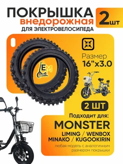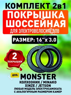 Покрышка шоссейная для электровелосипеда Monster 16"х3, 2шт