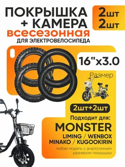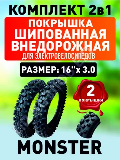 Покрышка всесезонная + камера для велосипеда Monster, 16*3.0