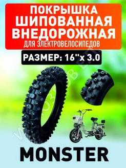 Покрышка шипованная для велосипеда Monster, 16*3.0