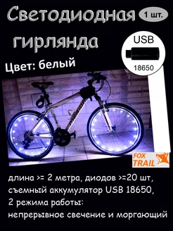Подсветка для колес велосипеда гирлянда (Цвет белый, 18650)