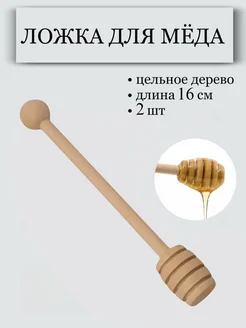 Деревянная ложка 2шт, веретено для меда