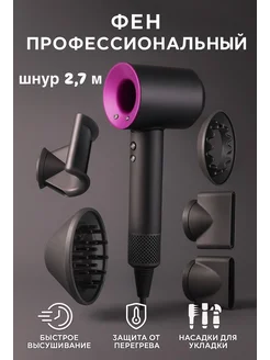 Фен для волос профессиональный с 5-ю насадками и ионизацией