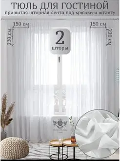 Тюль ширина 150 см 2 шт. итог 300 см высота 220 см