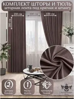 Шторы Канвас +ШТОРЫ 150х280 -2 шт + ТЮЛЬ 300х280-1 шт