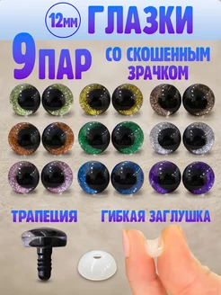 Глазки для игрушек со скошенным зрачком - 12мм 9 пар