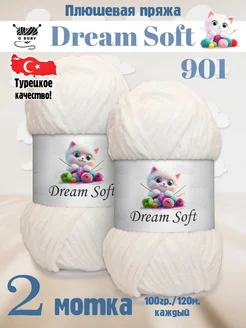Плюшевая пряжа Дрим Софт 901 Белый - 2 мотка