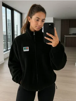 Кофта флисовая оверсайз зипка без капюшона плюшевая