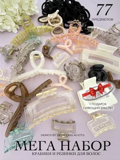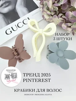 Крабик для волос набор 3 штуки заколка бабочка цветок бантик