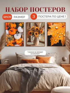 Набор постеров на стену 50х70 осенние тыквы листочек