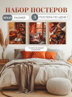 Постеры 30х40 на стену интерьерные осенние с котиком