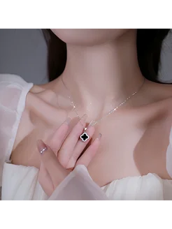 Цепочка на шею с кулоном клевер серебристая