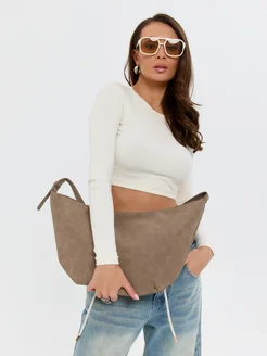 Сумка хобо через плечо замшевая бежевая
