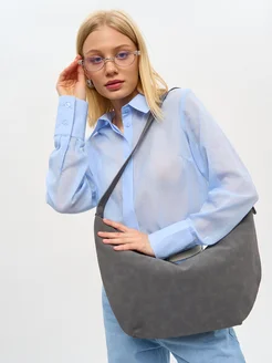 Сумка хобо через плечо замшевая серая