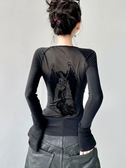 Черный топ с длинными рукавами Y2K