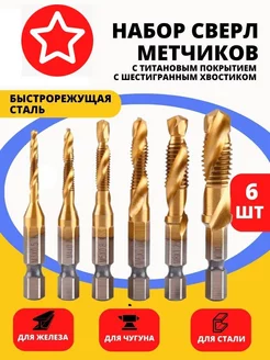 Набор сверл-метчиков с титановым покрытием для ремонта 6 шт