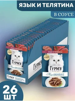 Влажный корм для кошек язык и телятина в соусе 26х75г