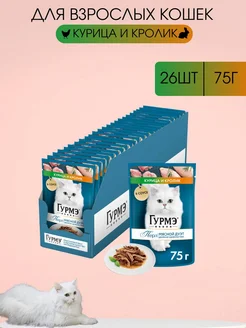 Влажный корм для кошек курица и кролик в соусе 26х75г