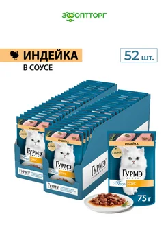 Влажный корм для кошек, Индейка в соусе, 75 г х 52 шт