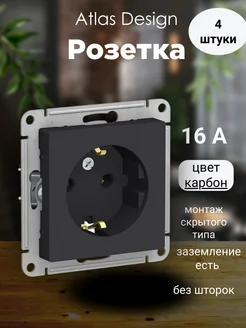 Розетка 1-м 16А IP20 с заземл. механизм карбон ATN001043