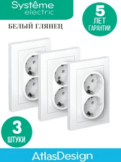 Встраиваемая двойная розетка с заземлением без шторок 3 шт