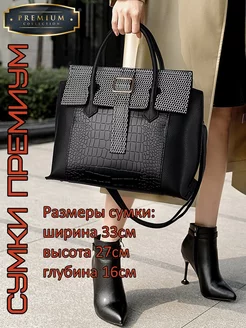 Сумка черная через плечо средняя на молнии кроссбоди тоут