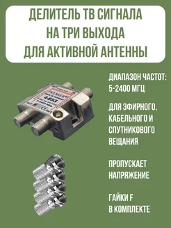 Делитель (splitter) ТВ сигнала на три выхода (5-2400МГц)