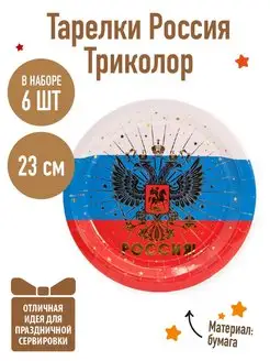 Тарелки одноразовые Россия триколор 23см