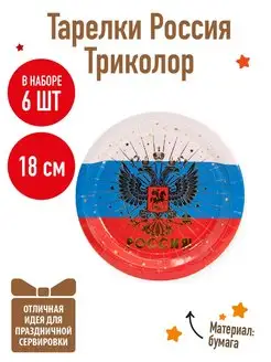 Тарелки одноразовые Россия, Триколор 18см
