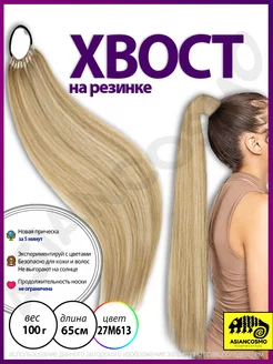 Шиньон хвост на резинке длинный накладной мелированный