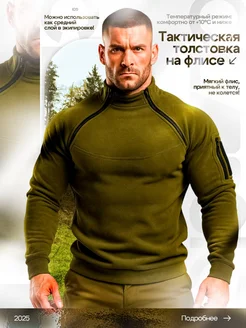 Кофта тактическая толстовка флиска теплая на молнии с горлом