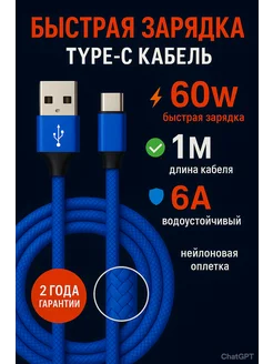 Кабель type-c быстрая зарядка 6 А для айфон 15
