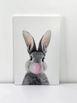 Кролик с розовой жвачкой полностью готовая картина 40х60
