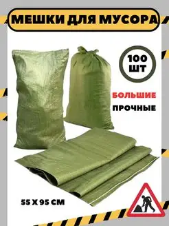 Мешки для строительного мусора 55х95 см (100 штук) зеленые