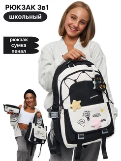Рюкзак школьный 3 в 1 черно-белый для школы