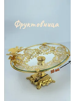 Фруктовница металлическая со стеклянным блюдом с ручкой