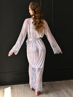 Шелковый халат "Bride" короткий для утра невесты с перьями