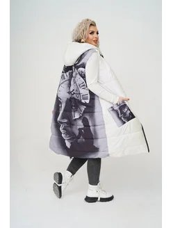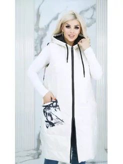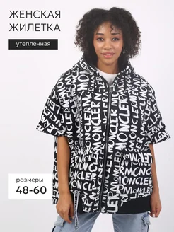 Жилетка удлиненная с принтом, утепленная большие размеры
