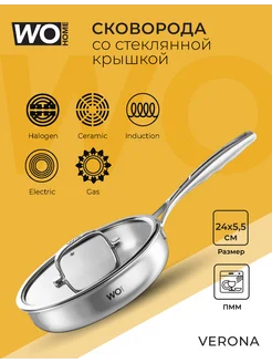 Сковорода со стеклянной крышкой Verona 24х5,5 см